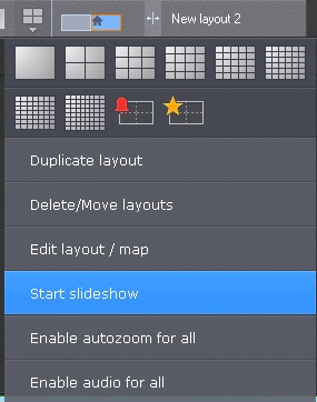 To launch a slideshow, click the button, and select Start slideshow in the context menu of the layout panel.