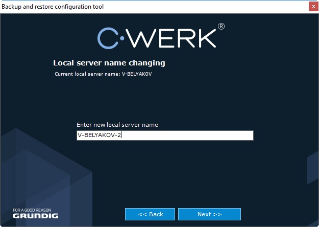 To change the local Server name using the Backup and Restore Utility, perform the following steps: