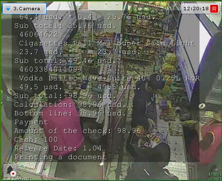 If you have configured the titles overlay, the video tiles show titles superimposed on video. You can have titles from several POS terminals in the same camera window.