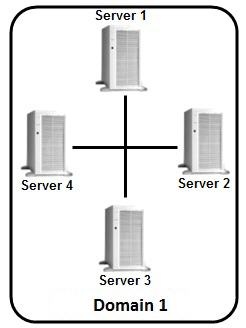 Servers are interoperable only if they belong to the same Domain. At the same time, each Server of the domain operates independently and has its own DB.