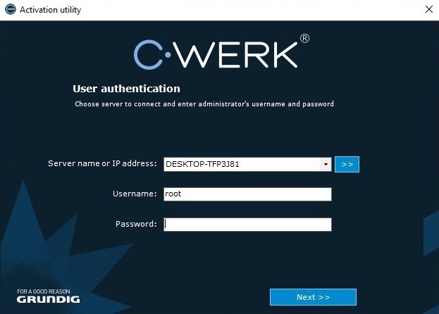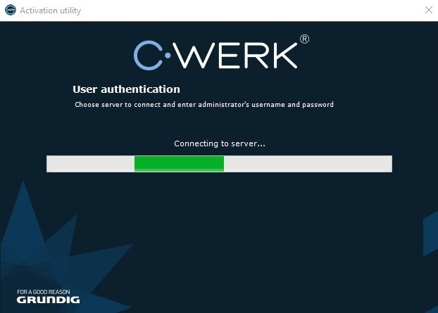 To activate C-Werk, connect to a Server in the Domain. Otherwise, an error message appears.