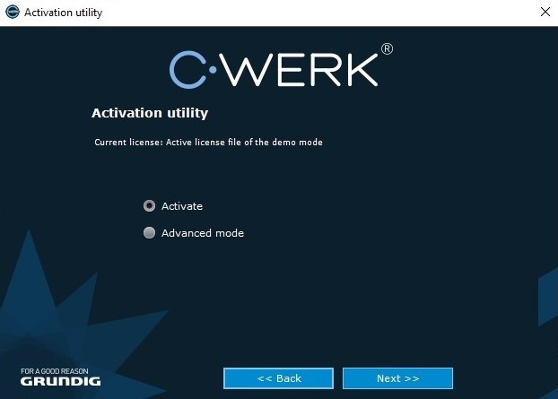 License activation for the C-Werk software package is carried out through the product activation utility.