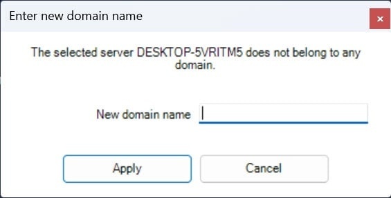 If the Server to which you connect doesn't belong to any domain, after you click the Connect button in the authorization window, a message will be displayed.