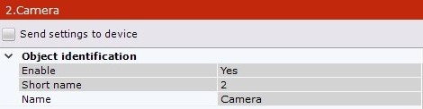 In the Object identification group, you can enter a camera name, a short name and a comments.