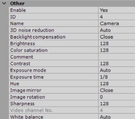 In the Other group, you can see video image parameters (contrast, brightness, color saturation, etc.). When configuring these, you can look up their descriptions in C-Werk interface. For more detailed information, please refer to the camera manual.