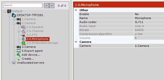 If a microphone is part of an IP Server, then you must specify the video camera to which it will be linked in the settings of the given microphone. When you do this, the Microphone object will become a child of the specified Camera object.