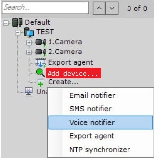 In the list of devices, highlight a Server object and click the Create voice notifier button (1).