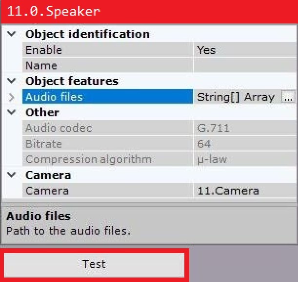 When you do this, the audio notification file whose path you indicated in the corresponding field plays back (see the section Configuring a Speaker Object).