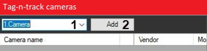In the Tag-n-track cameras group, in the list (1), select the camera that you want to link to the PTZ camera. Click the Add button (2).