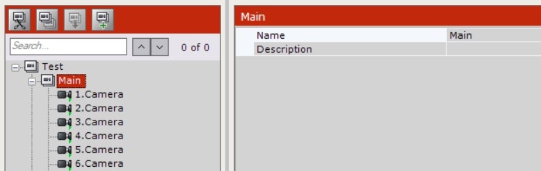By default, an object (whose name is the same as the Domain) is available, including all cameras that have been created in the system. This object is referred to here and elsewhere in the document as the "main group". This object cannot be deleted. Cameras in this group cannot be deleted.