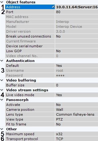 Specify the address of the device in the following format (1): <IP-address of local server>:<name of local server in Domain>:<ID of camera on server>.