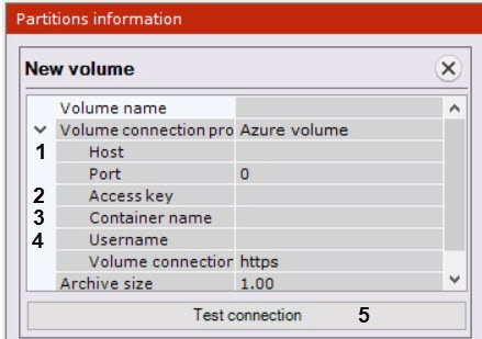 You must fill in the following fields for an archive volume based on the Microsoft Azure solution: