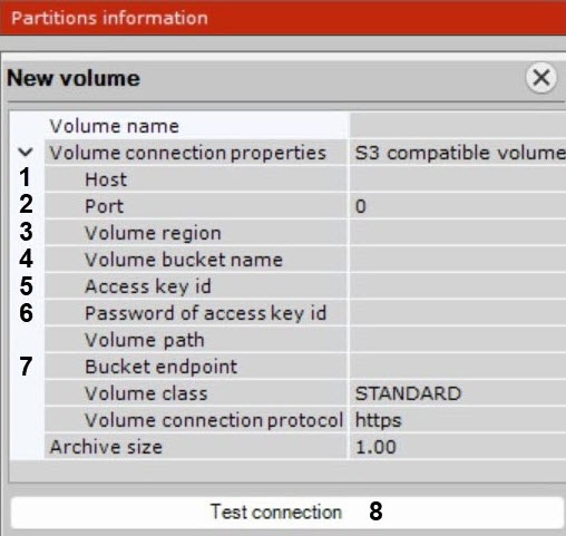 You must fill in the following fields for an archive volume based on the MinIO solution: