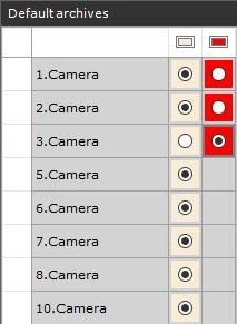 The default archive of a video camera is the archive to which images from a given video camera are recorded during user-initiated alarms. For each video camera one and only one default archive must be set. The first archive to which recording of a video stream from a video camera was configured automatically becomes the default archive (see Configuring recording to an archive).