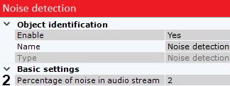 2. For the noise detection tool, set the threshold in percentage (2). The tool triggers on exceeding the threshold. Set the value by trial-and-error.