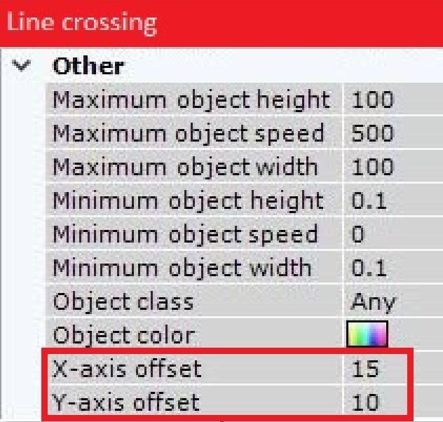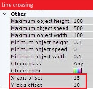 After you create and select a line crossing detection tool, you can see a virtual "tripwire" line in the FoV.