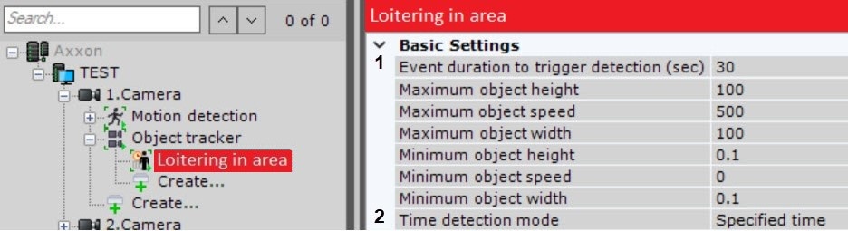 When configuring the Loitering detection tool, you must set the maximum time an object can be in the analyzed area: when the maximum time is exceeded, the detection tool is triggered.
