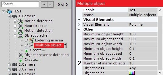 When configuring the Multiple objects detection tool, you should set the maximum number of objects within the analyzed zone. Exceeding this number leads to triggering the tool.