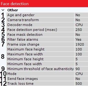 Select the processor for the face detection − CPU or NVIDIA GPU (10, see General information on configuring detection).