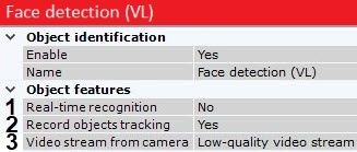 1. Select the Face detection (VL) object.