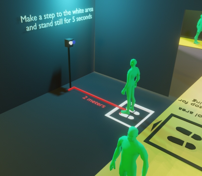 4. The subject should dwell in the control area no less than 3 seconds, standing/sitting still, facing the camera.