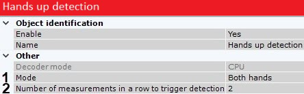 The Hands up detection tool works in the areas for detection and skip areas specified in the Pose detection tools (see Setting up common parameters for Pose detection tools).