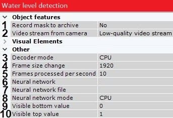 If a custom neural network is selected in the Neural network file field that corresponds to the device specified in the Neural network mode field and is a water level neural network, a detection tool with a neural network algorithm based on this network will be created.