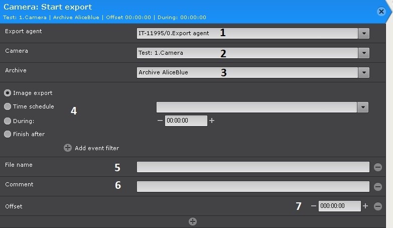 1. Export agent (1)select the Server (formally the Export agent object) to which you want to export the video recording (see Configuring Export agent).