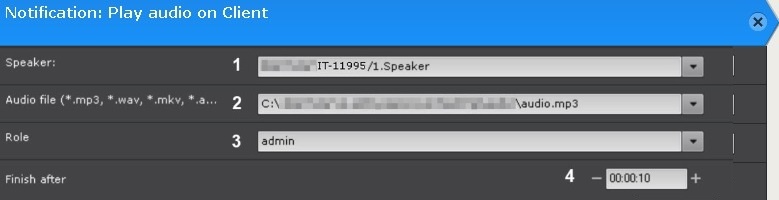 - If you need to cancel audio notification after some time, set the required time interval (4).