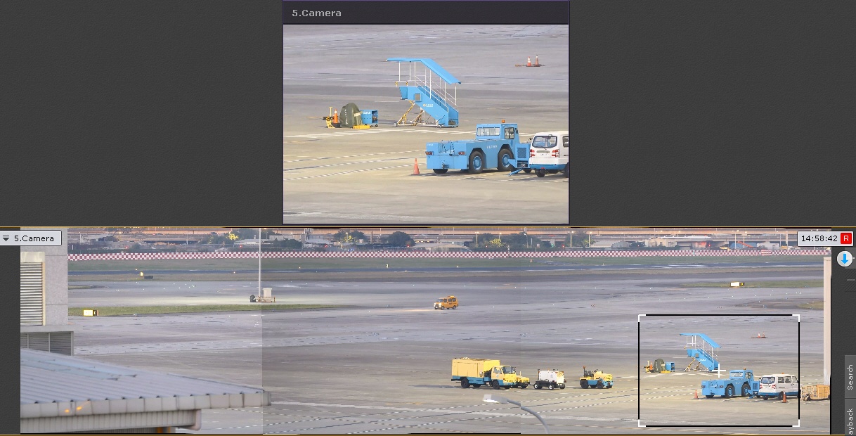 The resulting image will be displayed in a single viewing window. If you select a rectangular area within the video image (as for Area zoom function, see Control using Areazoom), the cropped image appears in the dialog board.