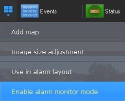 You can change any standard layout to an Alarmed cameras layout. To do this, in the layout editing mode, open the menu and select Enable alarm monitor mode.