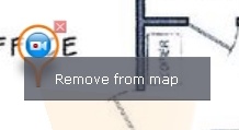 To remove an object from the map, click the button that is next to the object icon, or in the context menu, select Remove from map.