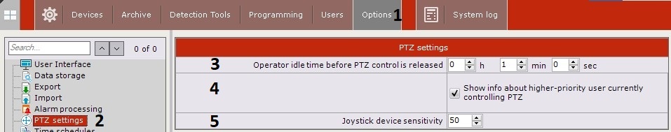 PTZ control is now configured.