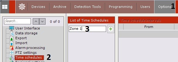 In the List of Time Schedules, enter the name of the required schedule (3) and click .