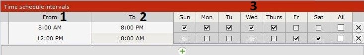 Enter the interval's start time in the From column with the help of the buttons accessible by left-clicking the appropriate cell twice (1).