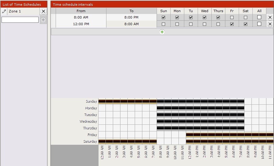 A visual display of time intervals for each day of the week is provided on the time chart.