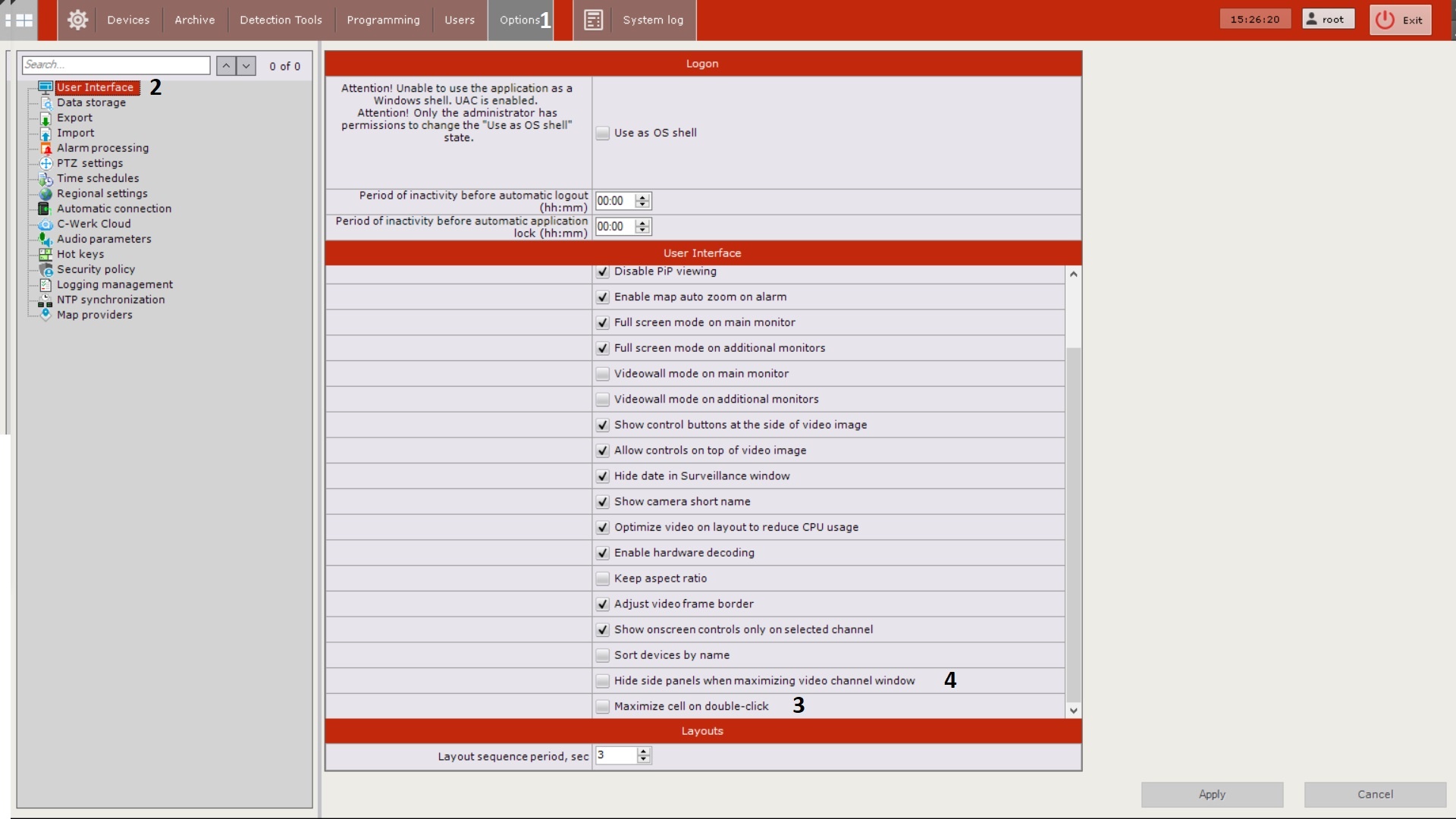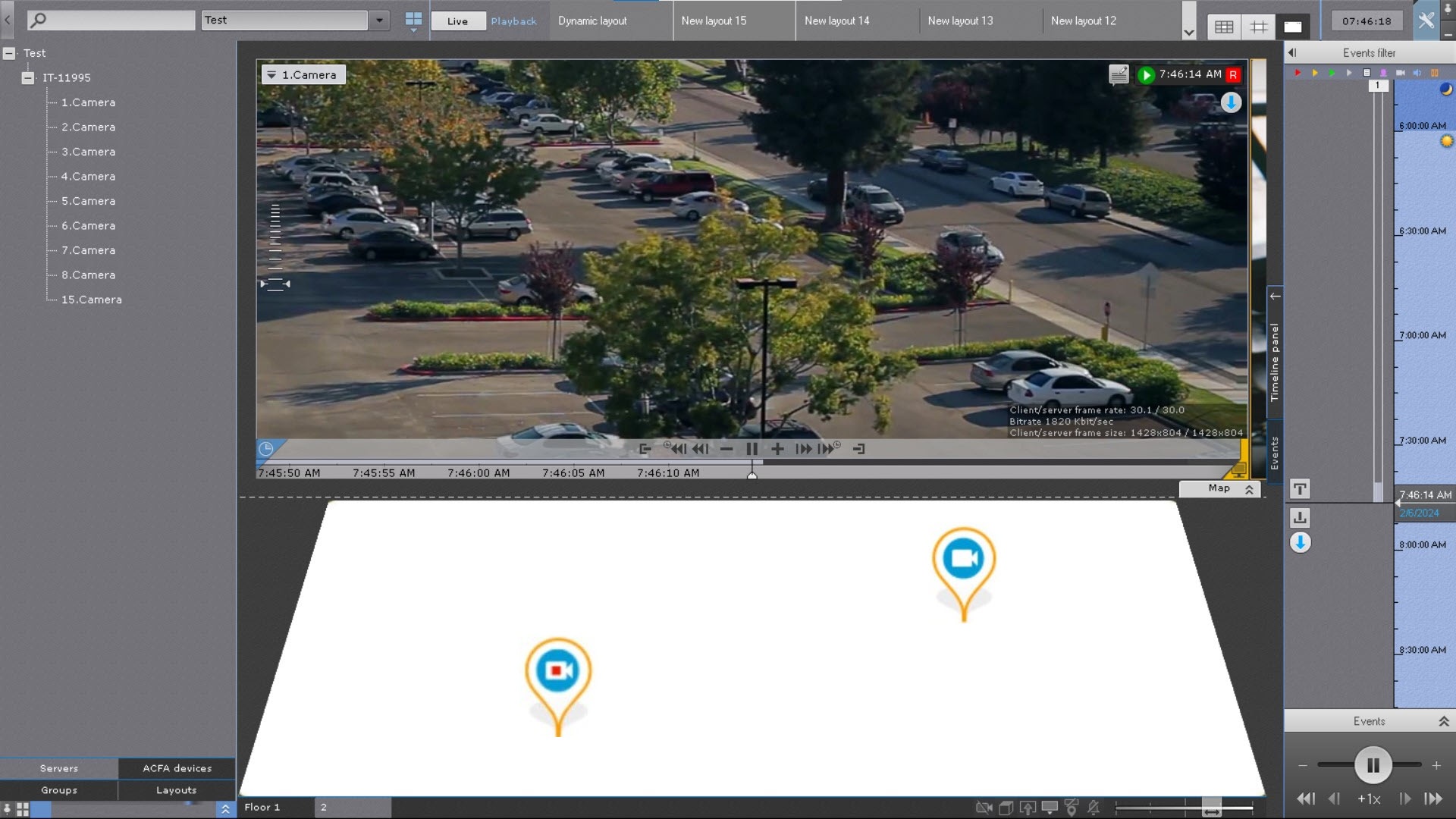 Configuring the cell maximization on double click is complete. When you double click the surveillance window, the side panels and the map won’t be displayed on the main and on the additional monitor. The side panel buttons will always be displayed.