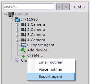 In the device list, click Create and select Export agent.