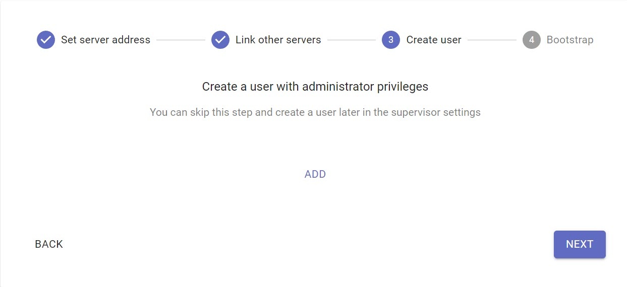 If required, you can add a user with administrator rights (see Set up access to a supervisor). After the cluster is created, only this user will have access to the supervisor. Do the following: