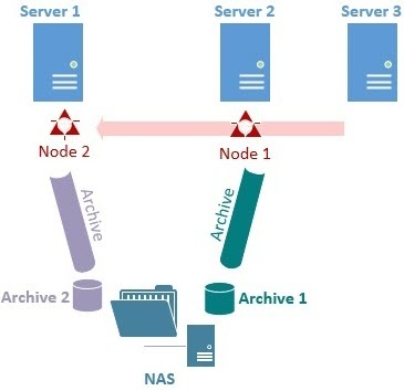 In a Failover system, we recommend you to physically locate the archive on a separate NAS remote storage that all servers in the cluster have access to.
