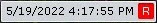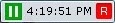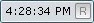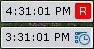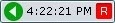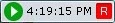 If the video is currently being recorded from the camera, the letter R is displayed in red to the right of the clock: . Otherwise, the letter R is displayed in gray: .