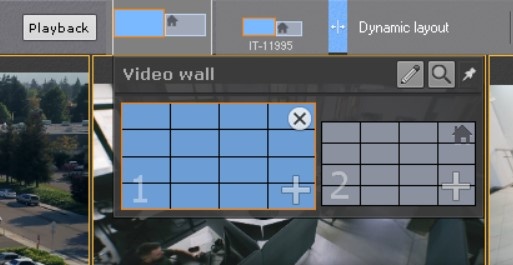 The panel shows thumbnail views of Client monitors currently connected to Domain Servers on which video walls management is permitted for the given User (see Creating and configuring roles).