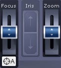 To control focus, iris, and optical zoom, move the corresponding slider up or down.
