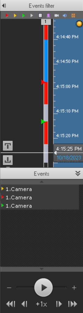 The Events List and the timeline are dynamically linked: when you select an event in the list, the timeline indicator automatically jumps to the selected position.