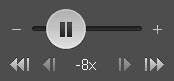 Tp speed up playback by one step, click . To slow down by one step, click . To temporarily change the playback speed, move the slider in the desired direction.