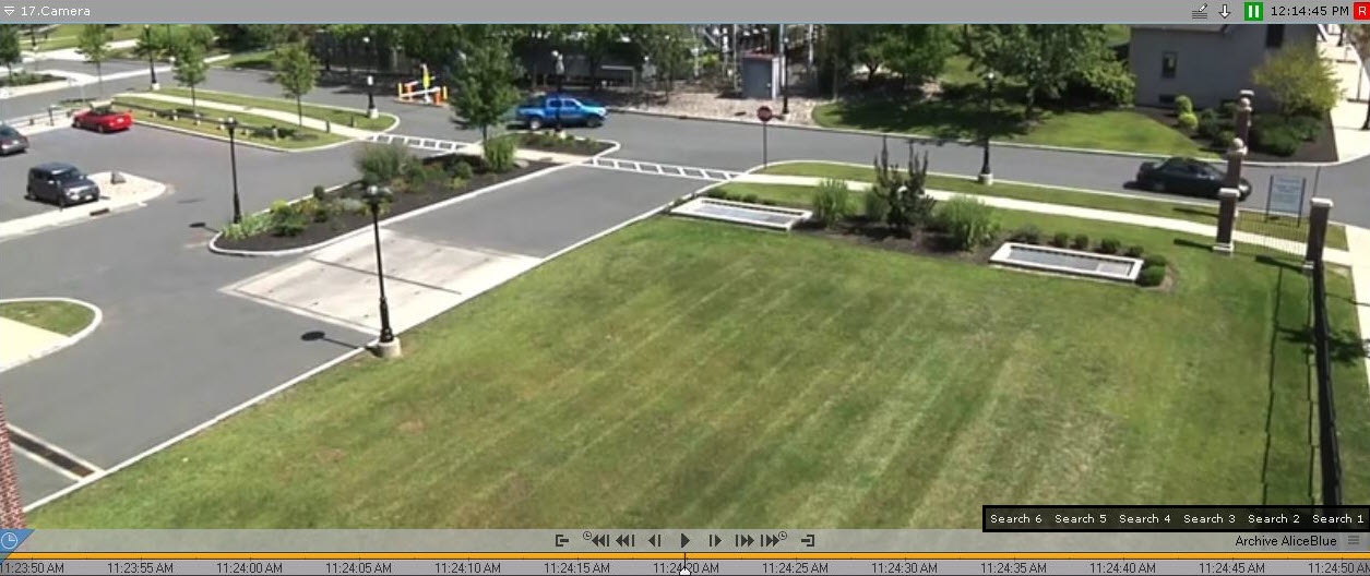 If the system has saved Forensic Search queries for a video camera, tabs for these queries are displayed in the lower-right corner of the corresponding viewing tile.