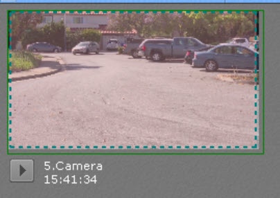 Each alarm event is displayed on the Alarms Panel as follows: the event preview window with the first frame of the alarm event; under the preview window, there is a playback button, time when the alarm event occurred and the name of the video camera.