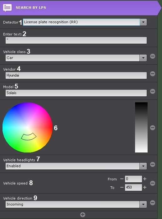 To search by additional criteria, the Vehicle recognition option should be enabled in the License plate recognition (RR) settings (see Configuring License plate recognition (RR)).