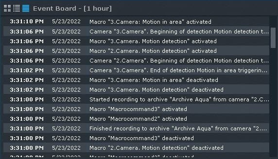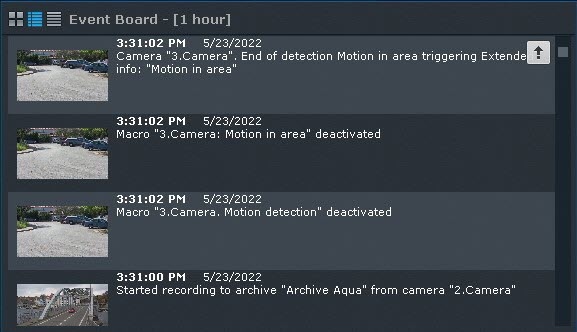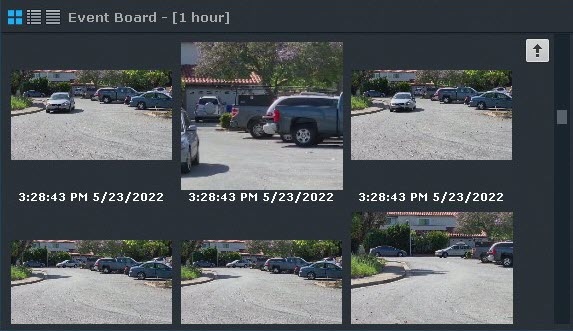 You can also access the events panel on the right side of the screen (see Viewing selected camera's detection tool triggering events). In this case, it includes only detection events for a selected camera.