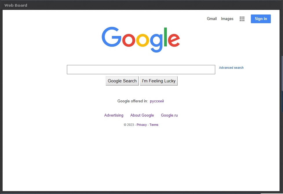 If the web page does not fit the board, vertical and horizontal scroll bars are displayed. In this case, the upper-left corner of the web page is displayed.